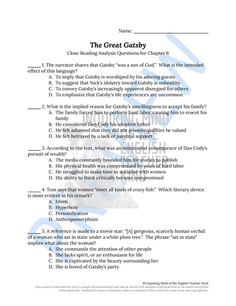 Free PDF Great Gatsby Contemporary Classic Study Questions Answered rtf